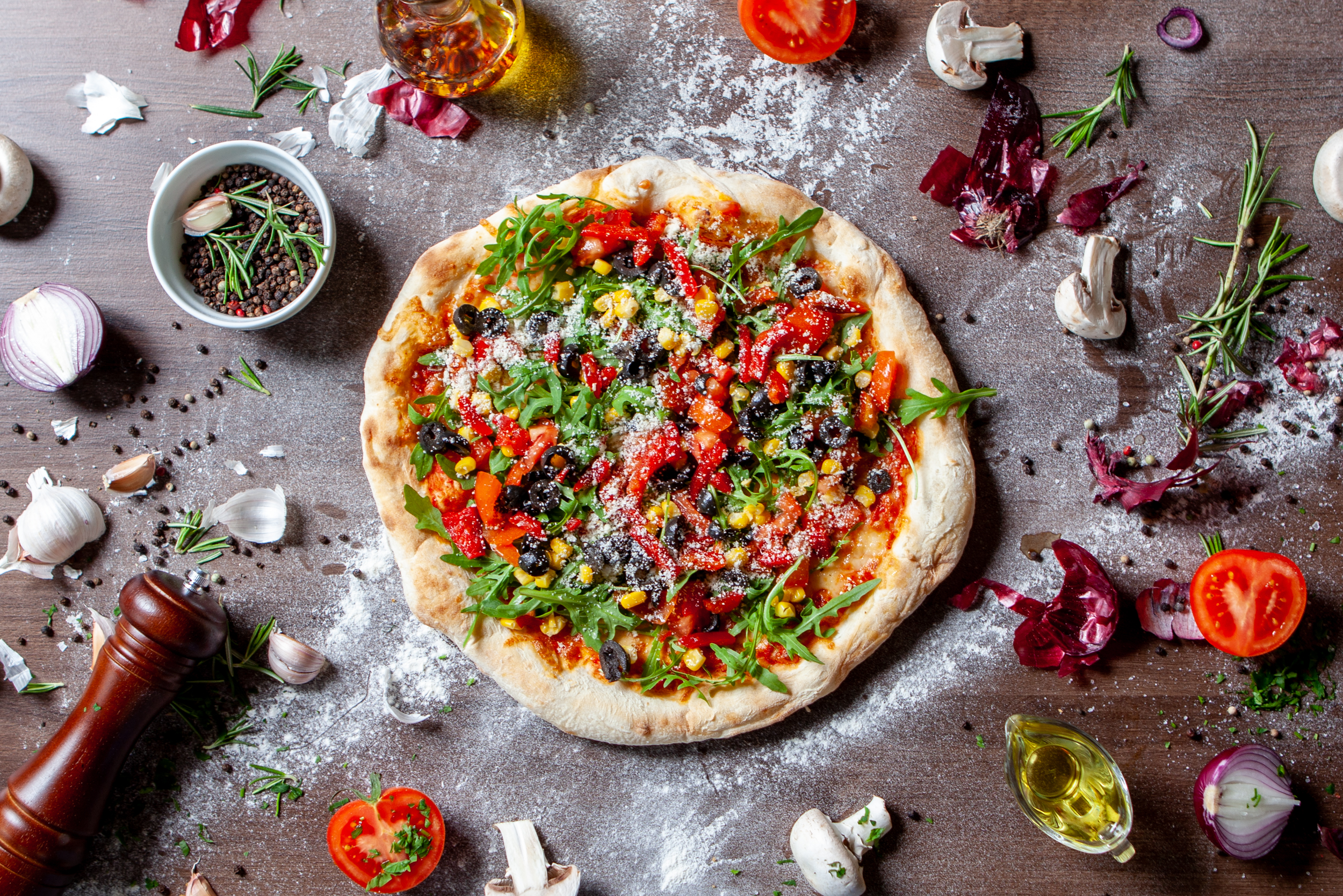 Gustul acesteia este o explozie de savoare. Sosul de roșii își aduce aportul de dulceață și acel gust distinct italian, mozzarella se topește perfect și îi oferă cremozitate, iar rucola adaugă o notă ușor amăruie. Ardeiul și porumbul aduc un plus de dulceață, iar roșiile proaspete oferă o aromă intensă și o prospețime minunată, în timp ce măslinele adaugă gustul necesar de sare. Nu în ultimul rând, parmezanul ras care completează perfect toată combinația de arome.
